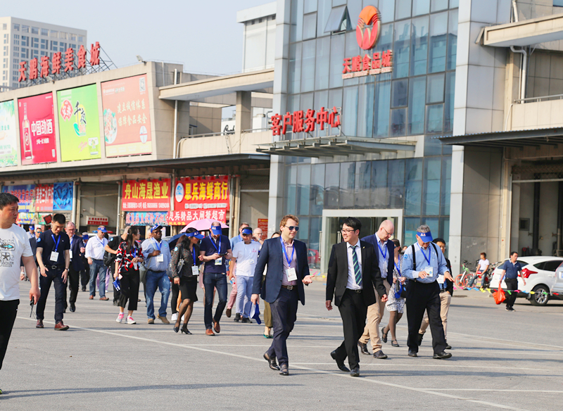 5月14日下午,中国(无锡)国际肉类贸易发展大会中外嘉宾在天鹏青年志愿者的带领下实地参观了天鹏食品城。