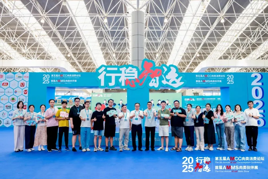 为精准把握肉类产业变革脉搏,探寻高质量发展路径,8月15日,苏豪天鹏组建调研团赴苏州昆山参加2025AMCC肉类消费论坛暨《鹏友》通讯员研学观展活动。20余人的调研团由天鹏经营户、经营团队及通讯员组成。