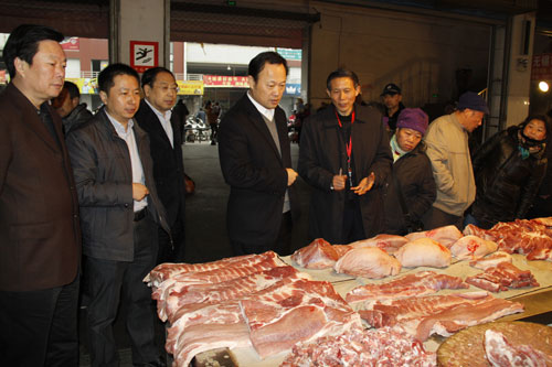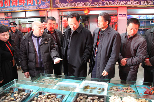 2013年1月31日上午,无锡市政协主席周敏炜率市政协有关领导来到无锡天鹏食品城实地调研节日市场供应情况。