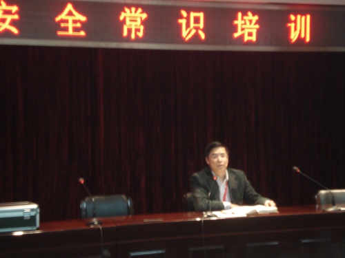 培训活动之前,物业管理分公司经理杨铭勤首先分析了目前我公司的安全生产形势,一季度春供期间、全国“两会”期间安全生产状况保持了基本稳定,基本达到了上级管理部门的要求。但是安全生产工作只有起点,没有终点,大家安全工作这根弦决不能放松,比如:3月5日,A区42#、43#经营户私自将三轮电动车停在店面内充电引起火警事故情况,由于公司消控中心值班员工作责任心较强,发现及时,保安采取措施得当,避免了一场火灾的发生。