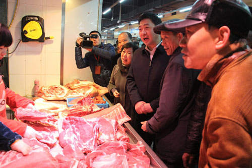 汪泉市长到天鹏食品城检查节日市场供应工作